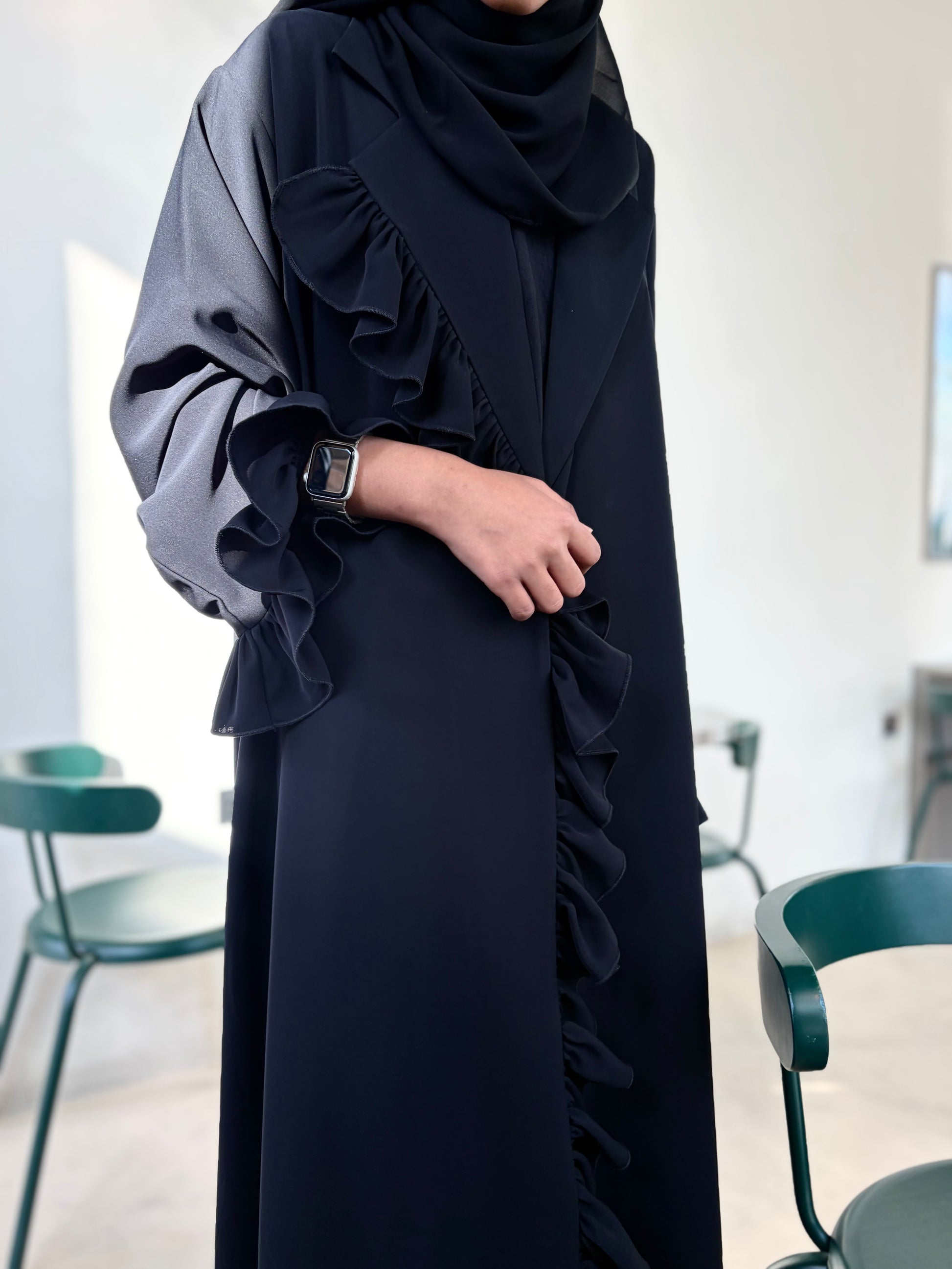 (Black Ruffle Statement Abaya)