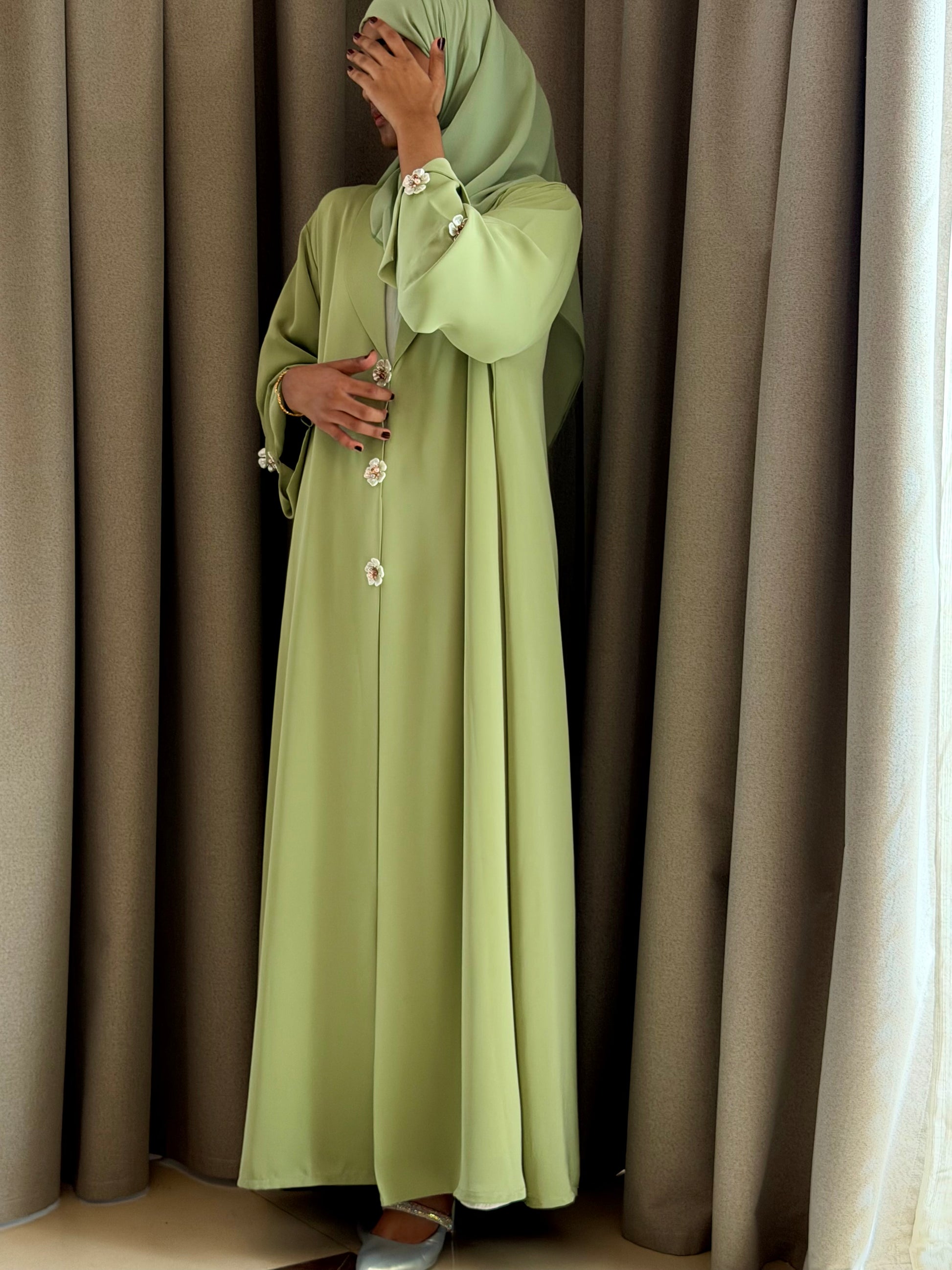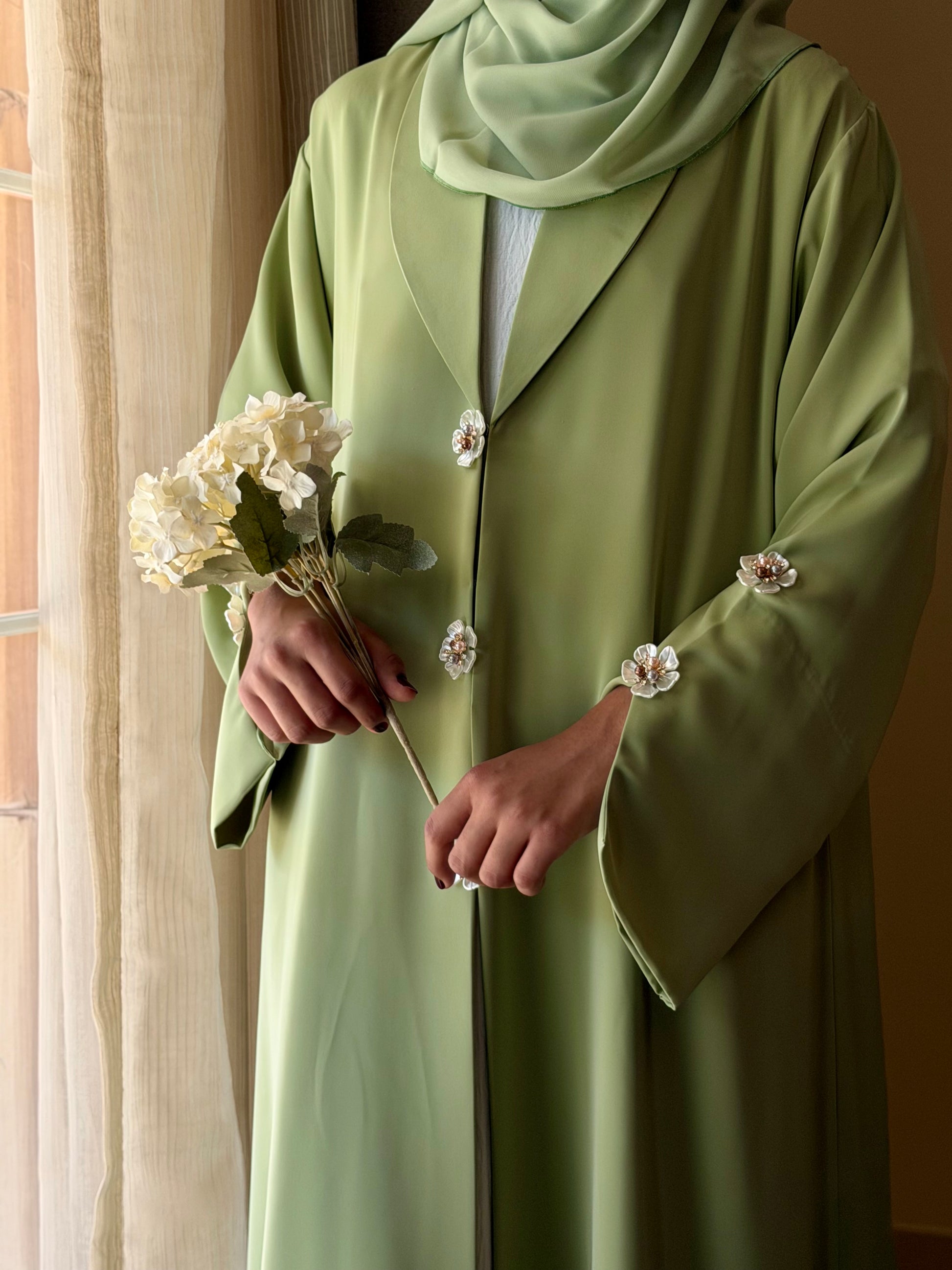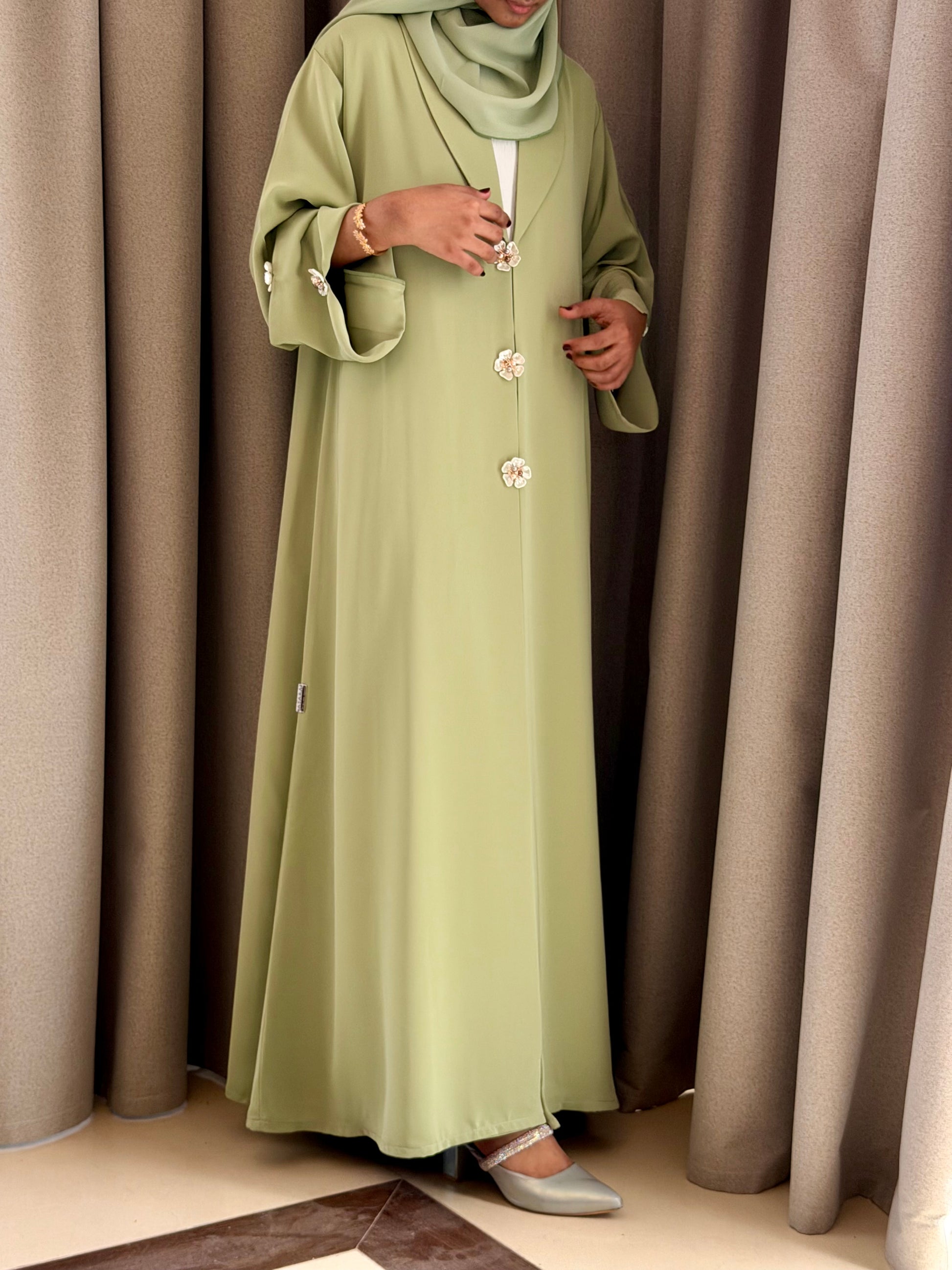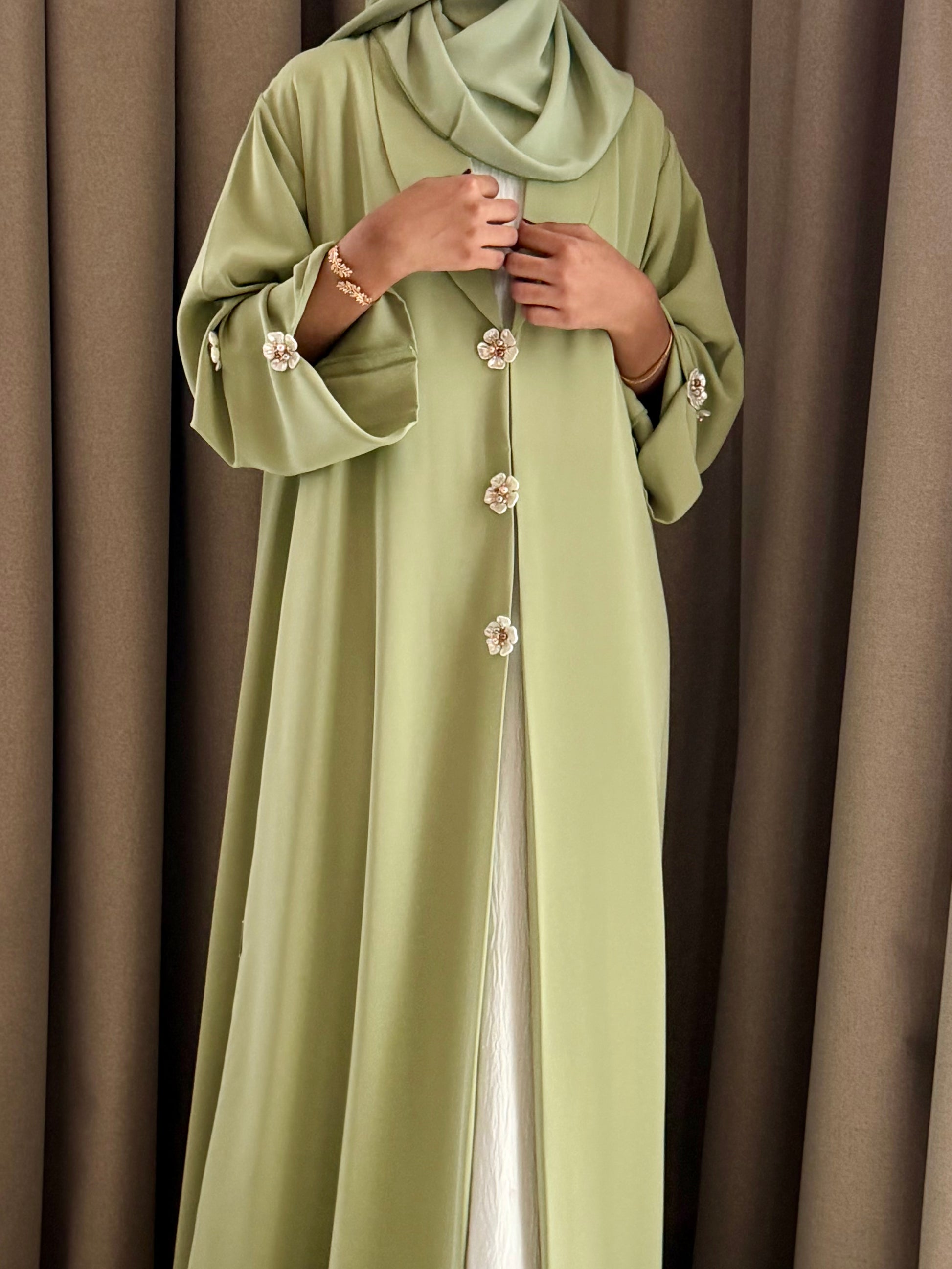 Serene, grounded, and effortlessly fresh — Matcha Dream captures the essence of calm mornings and mindful moments. With floral-inspired button detailing on soft green crepe, this piece is both uplifting and graceful.