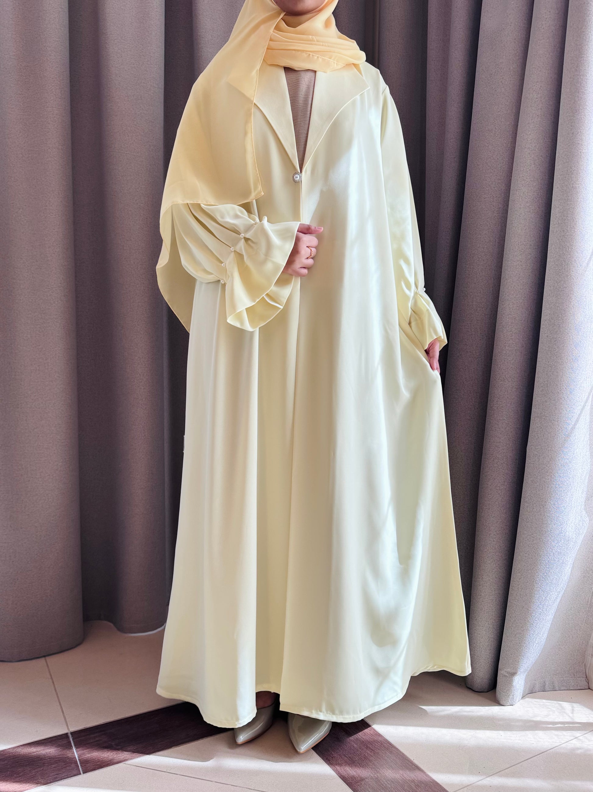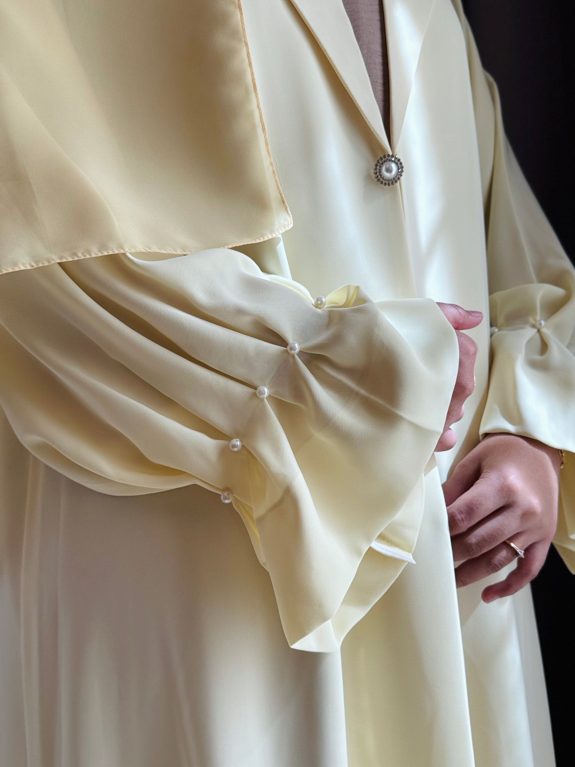 Light, luminous, and serene — Moonlit Whisper feels like a breath of calm. With its gentle cuff details and flowy drape, this abaya mirrors the tranquility of a moonlit evening.