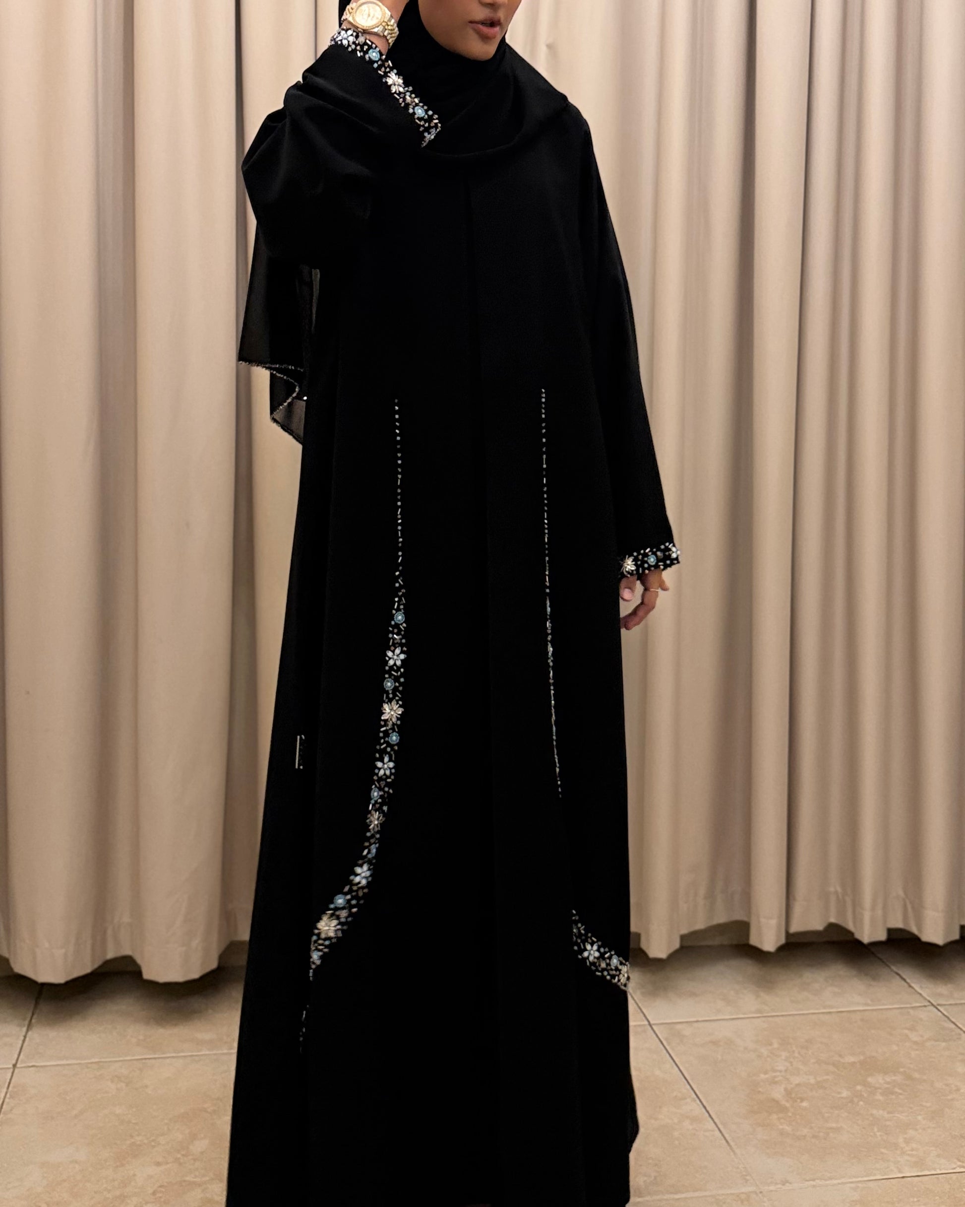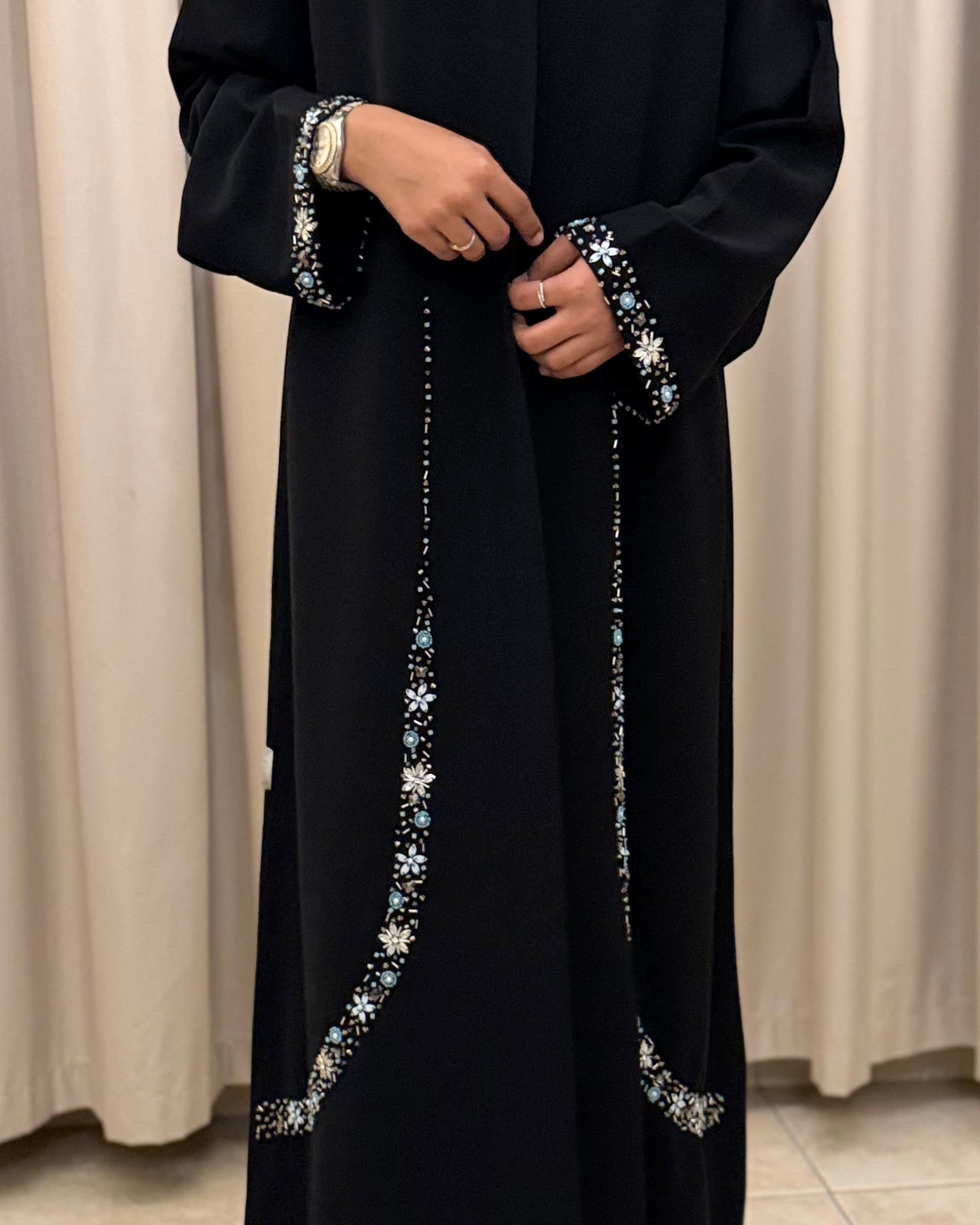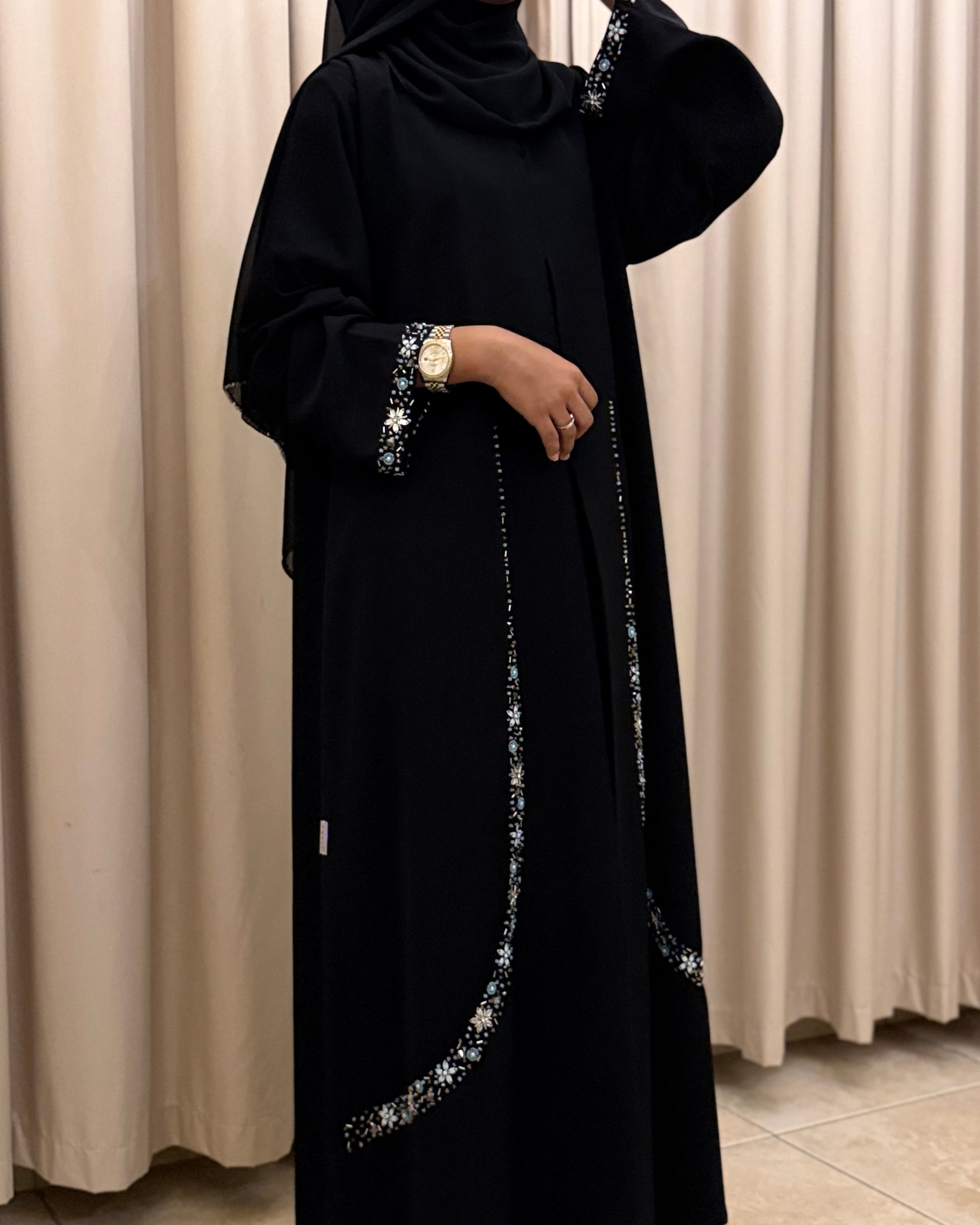 (Black Crystal Curve Detail Abaya)