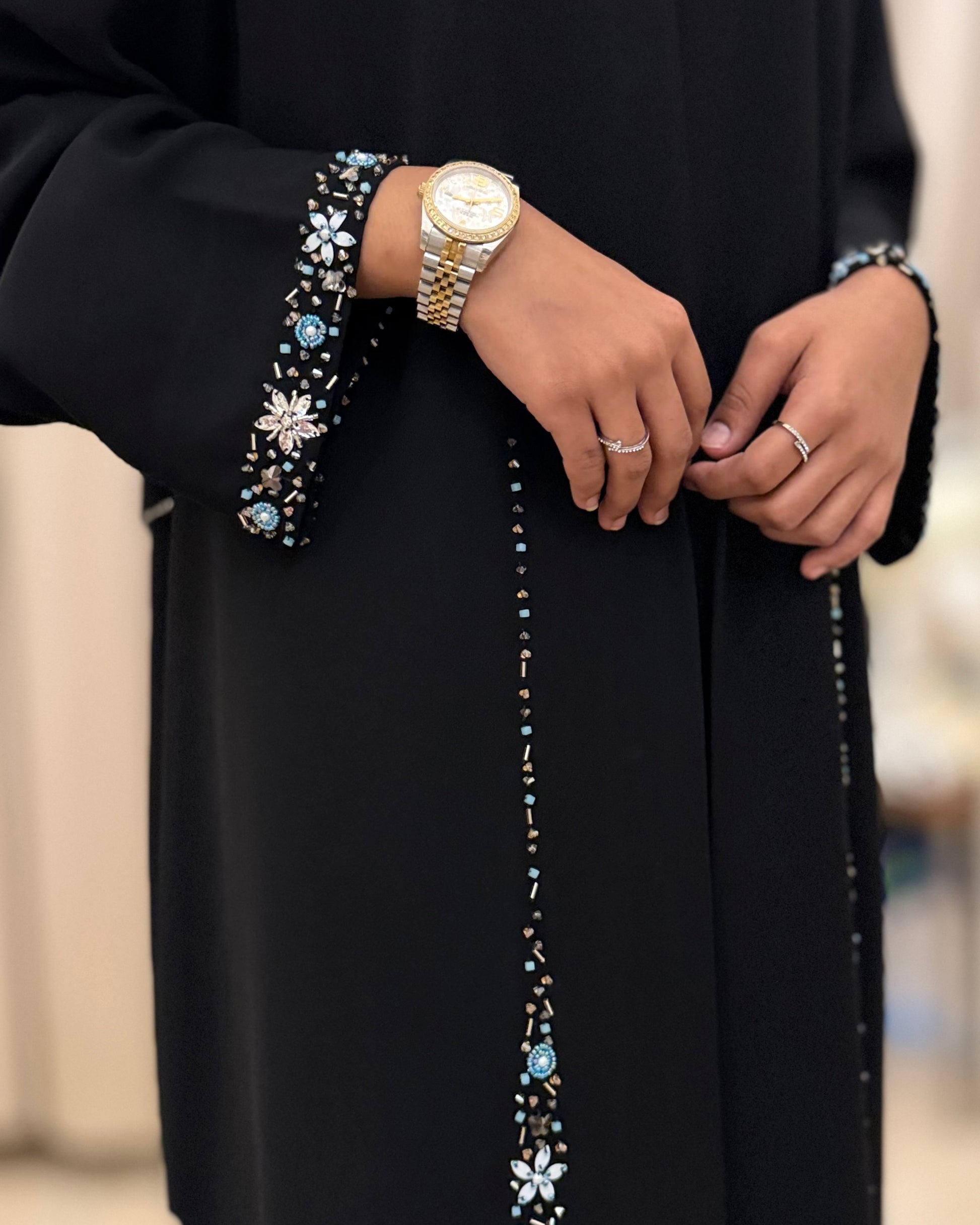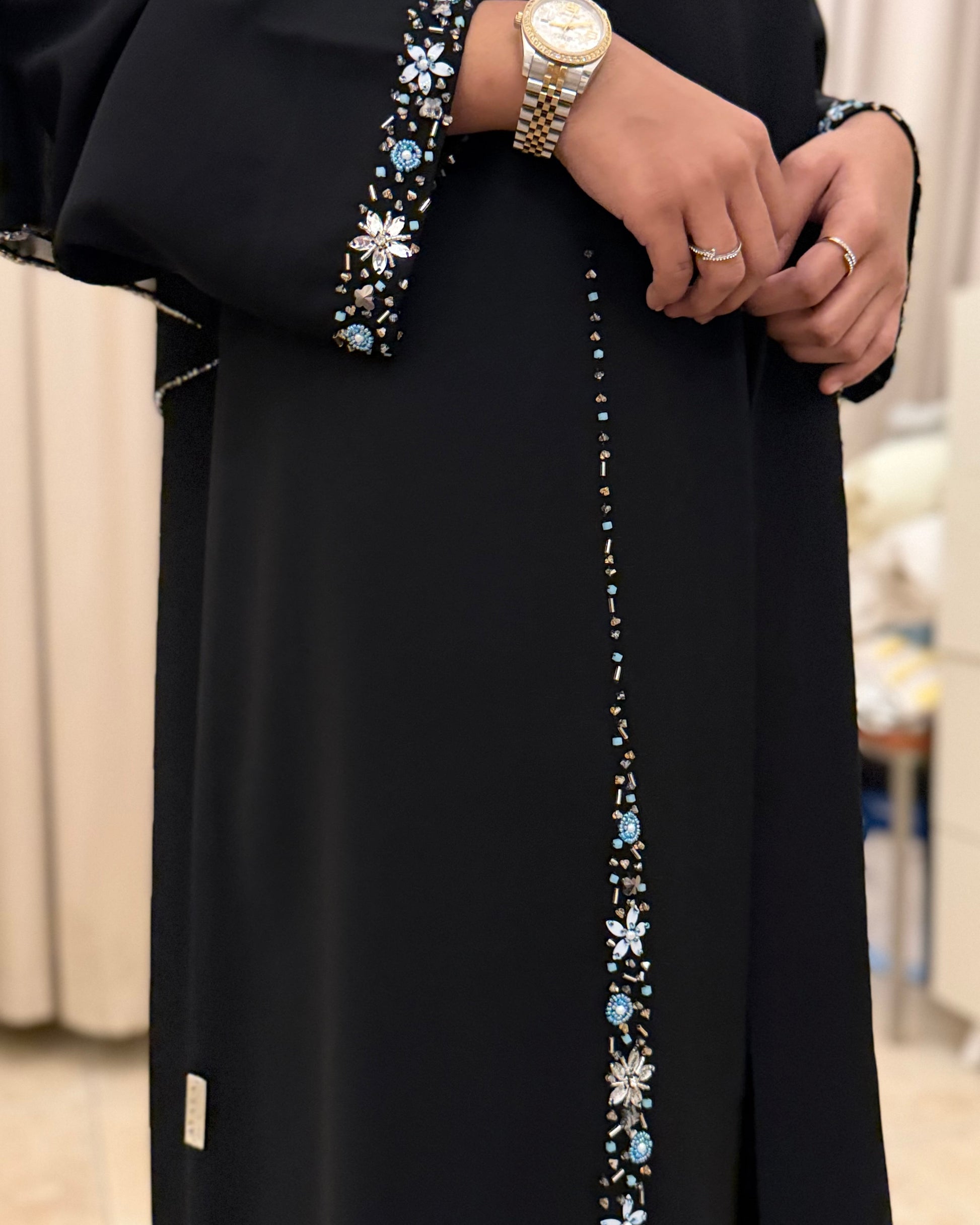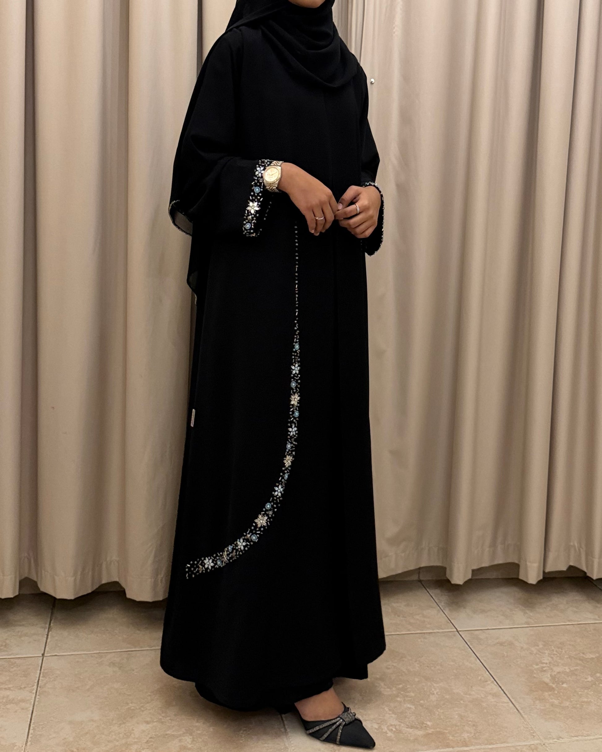 (Black Crystal Curve Detail Abaya)